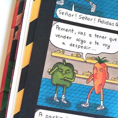 Un delirio de alimentos antropomorfos que hablan y sufren en nuestro mundo: vanidad en internet, precariedad laboral, viviendas lamentables… y, a pesar de todo, risas.